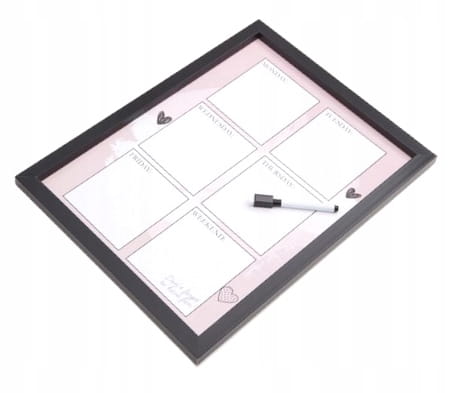 Tablica suchościeralna z planem tygodniowym. Marker w zestawie.